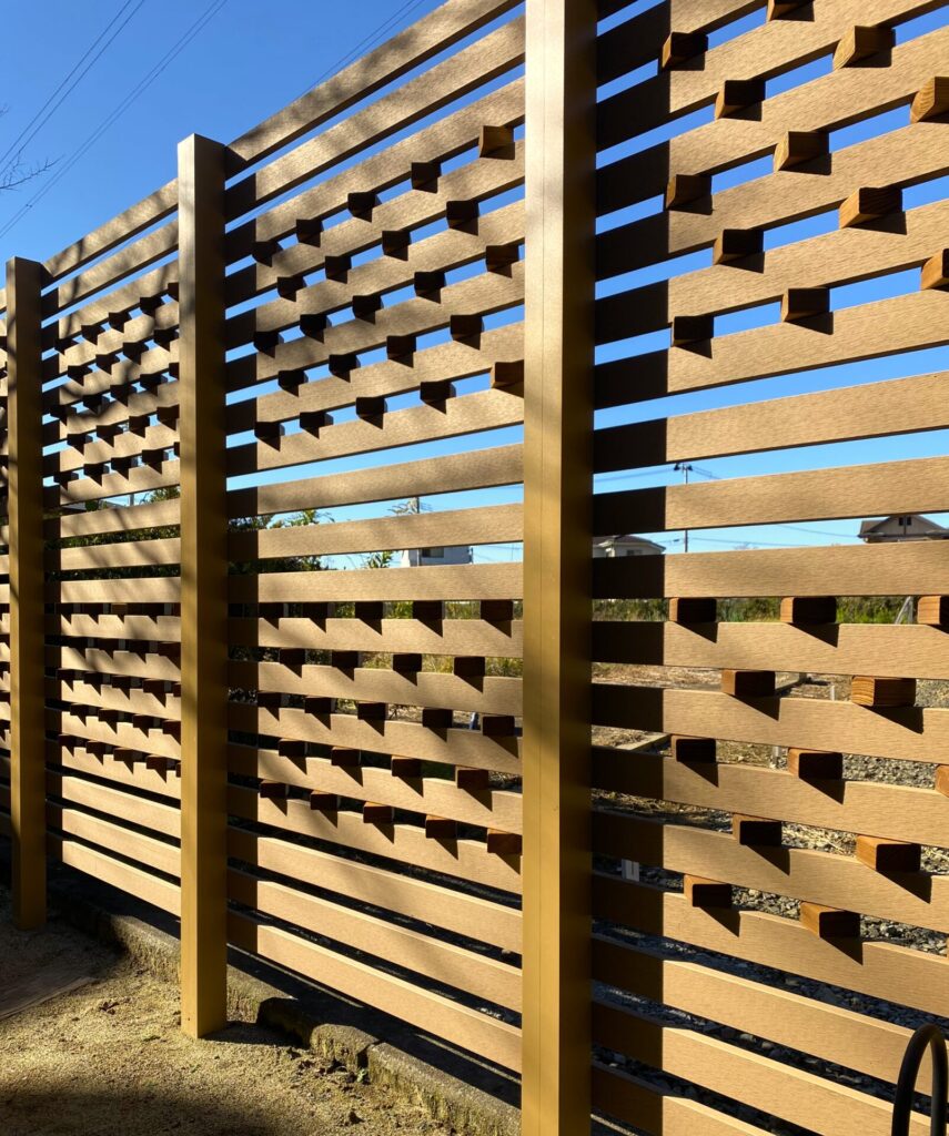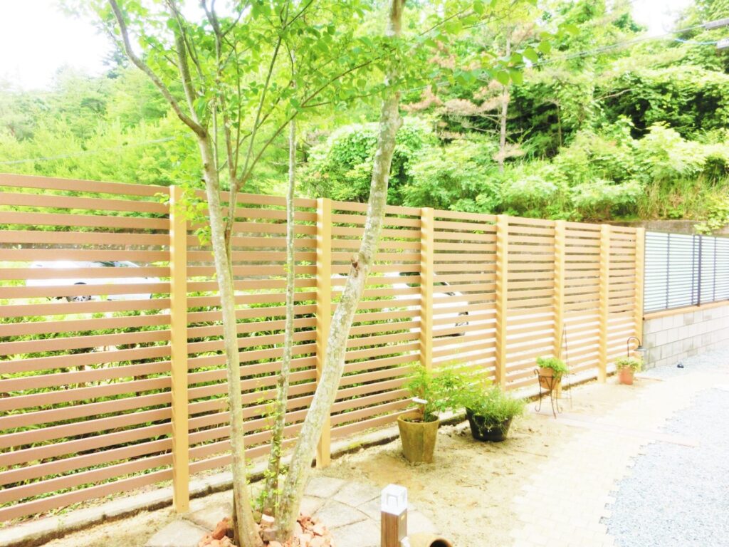 生垣の代わりに新たに設置した樹脂製のデコウッドフェンス