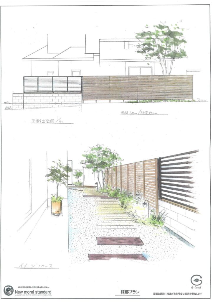 宮城県仙台市K様邸/お庭外構リフォーム工事/樹脂フェンス/オリジナル目隠しフェンス/アプローチ