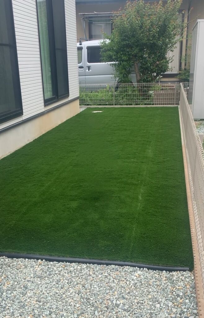 ・人工芝を敷いて一年中緑の芝生を眺められるお庭として!